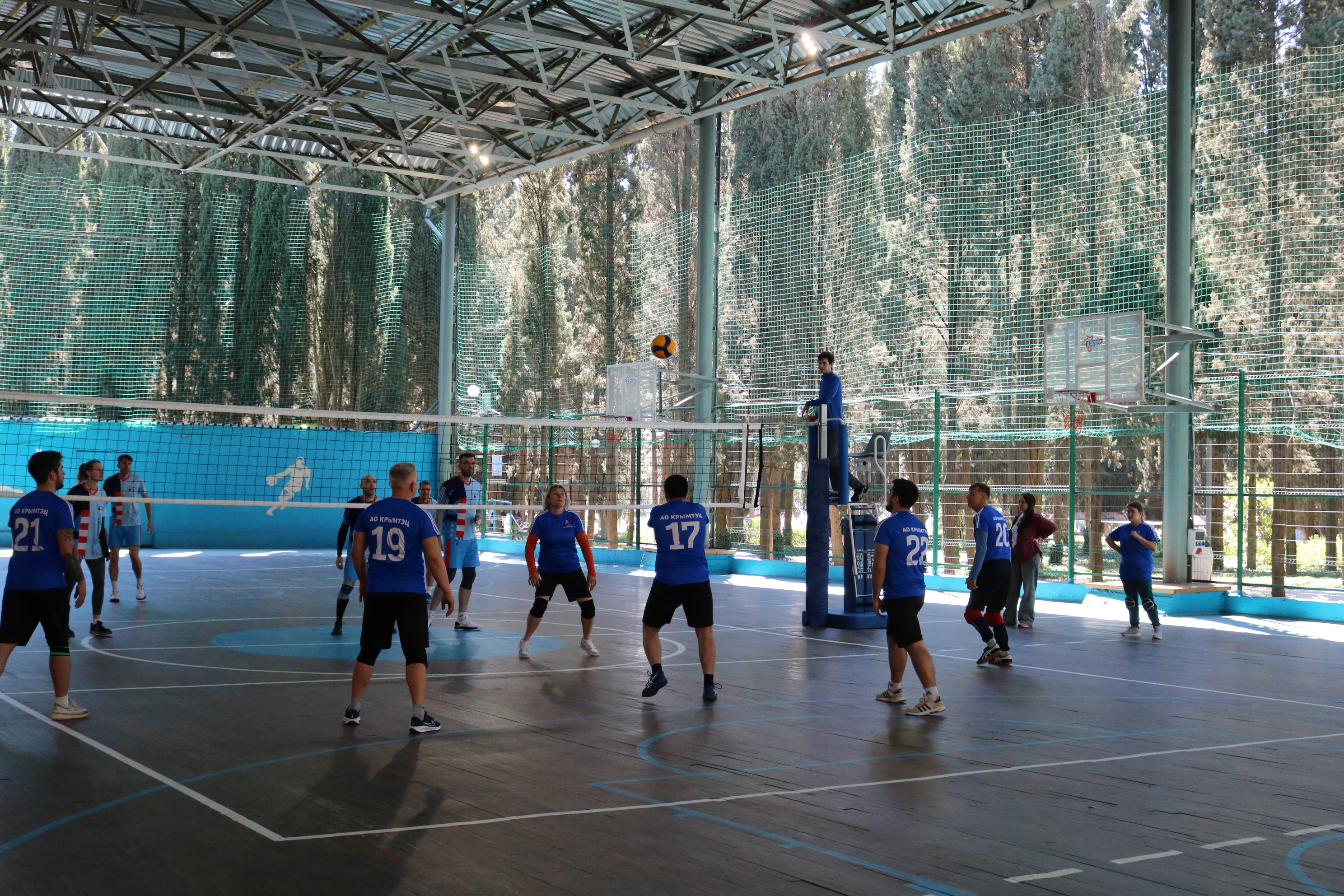 В волейболе по жеребьевке мы также попали с группу с сильными соперниками, среди которых была команда-победитель прошлых корпоративных игр.
