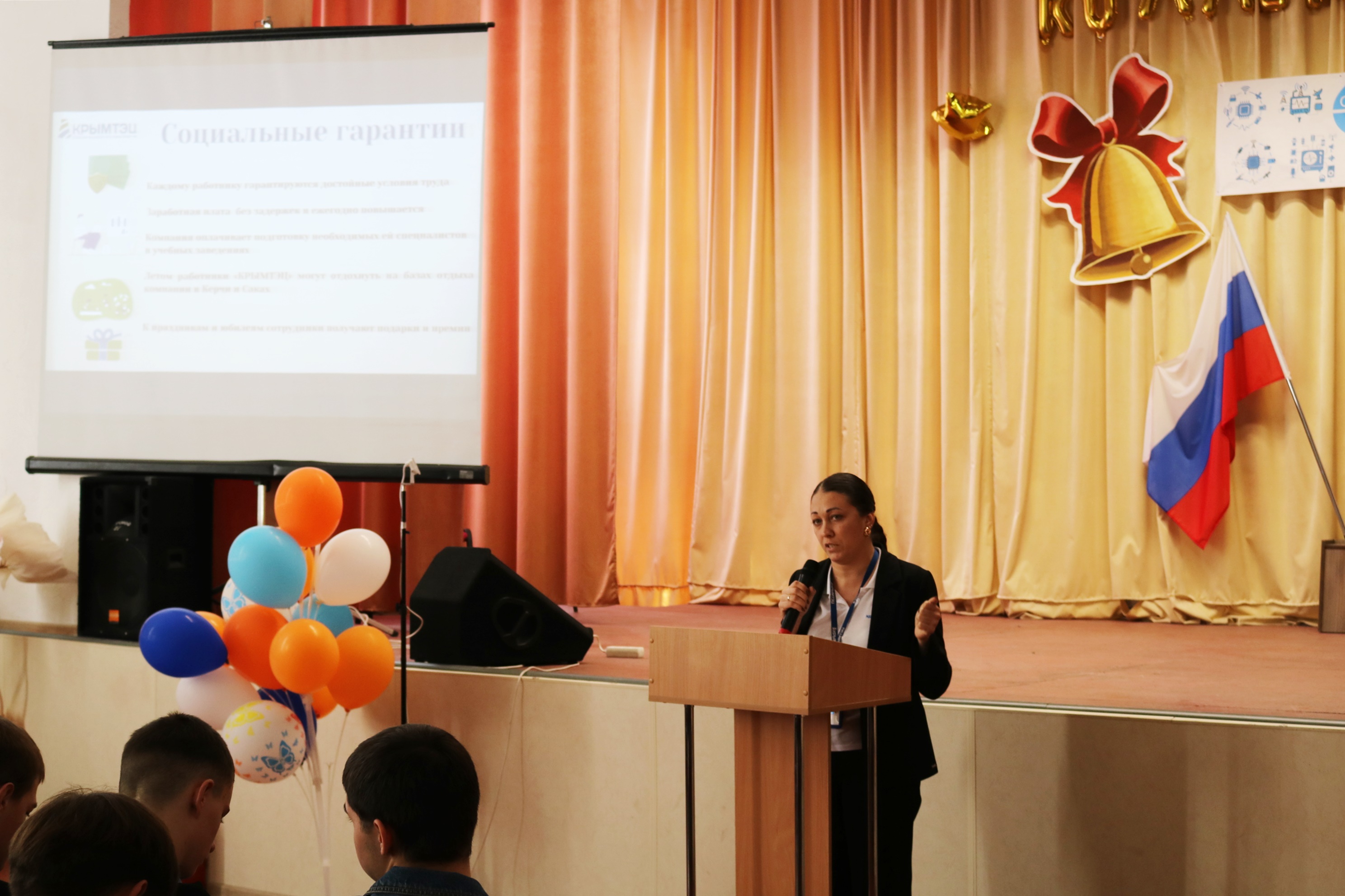 Руководитель отдела найма и подготовки персонала АО «КРЫМТЭЦ» Ирина Кибенко подробно рассказала о направлениях деятельности предприятия и о свободных вакансиях на трех станциях.